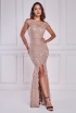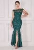 Burgundy Scallop And Sequin Embroidered Bardot Maxi Dress