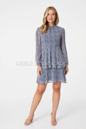 STELLA Navy Printed Long Sleeve Dress