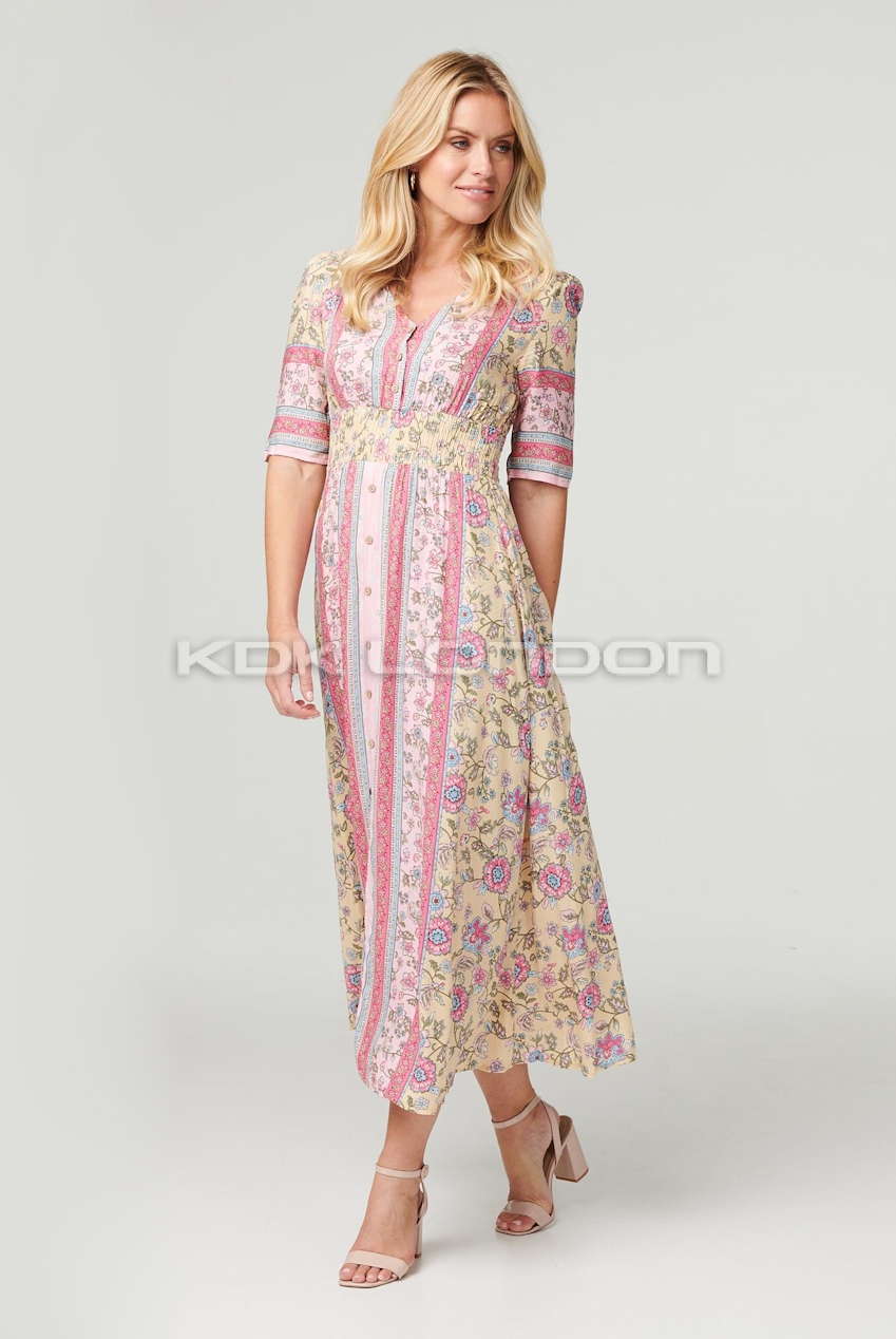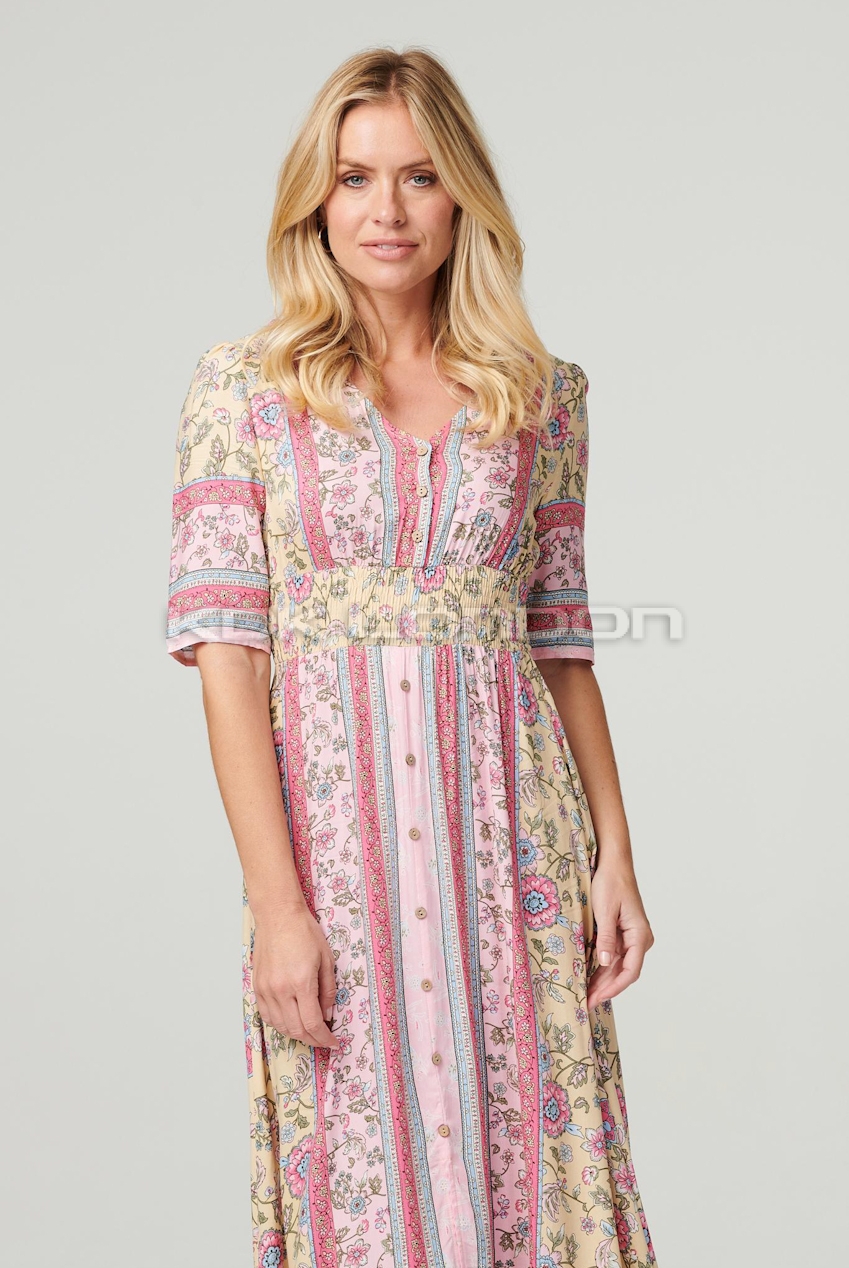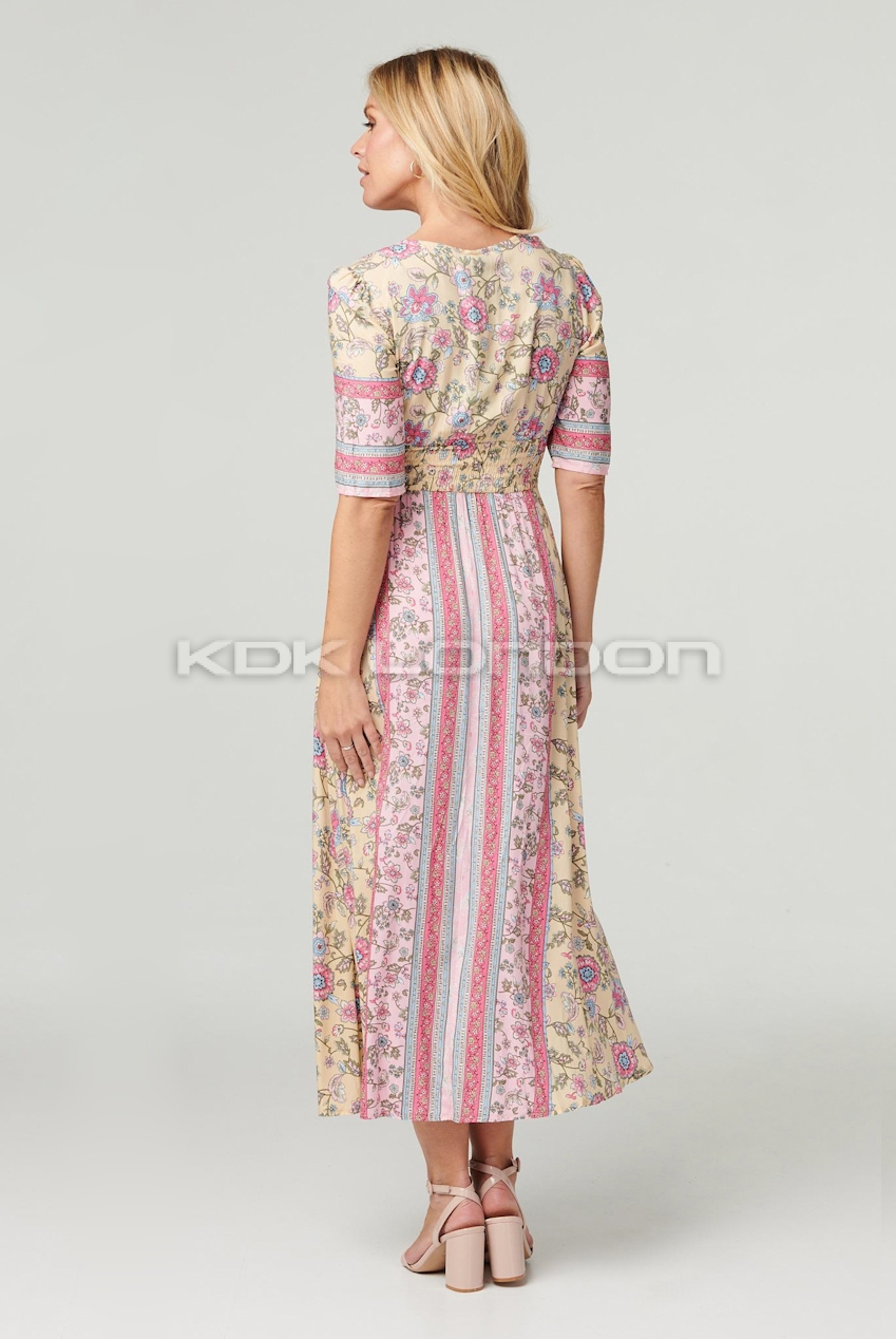 STELLA Pink Short Sleeves Swing Midi Dress