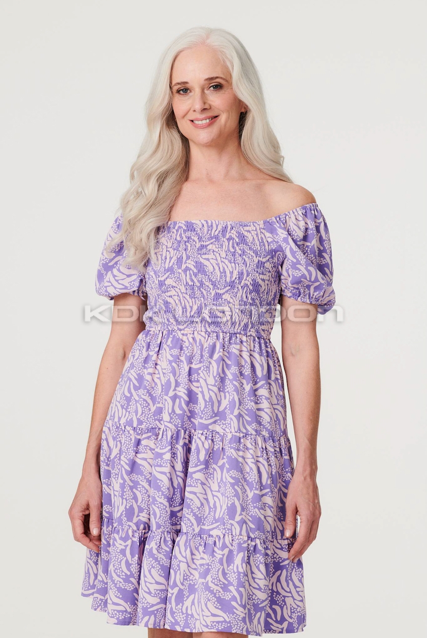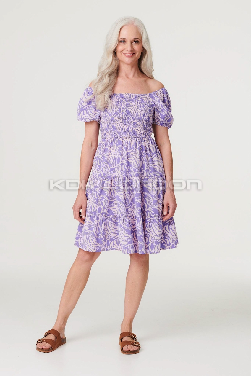 STELLA Purple Short Sleeves Midi Dress