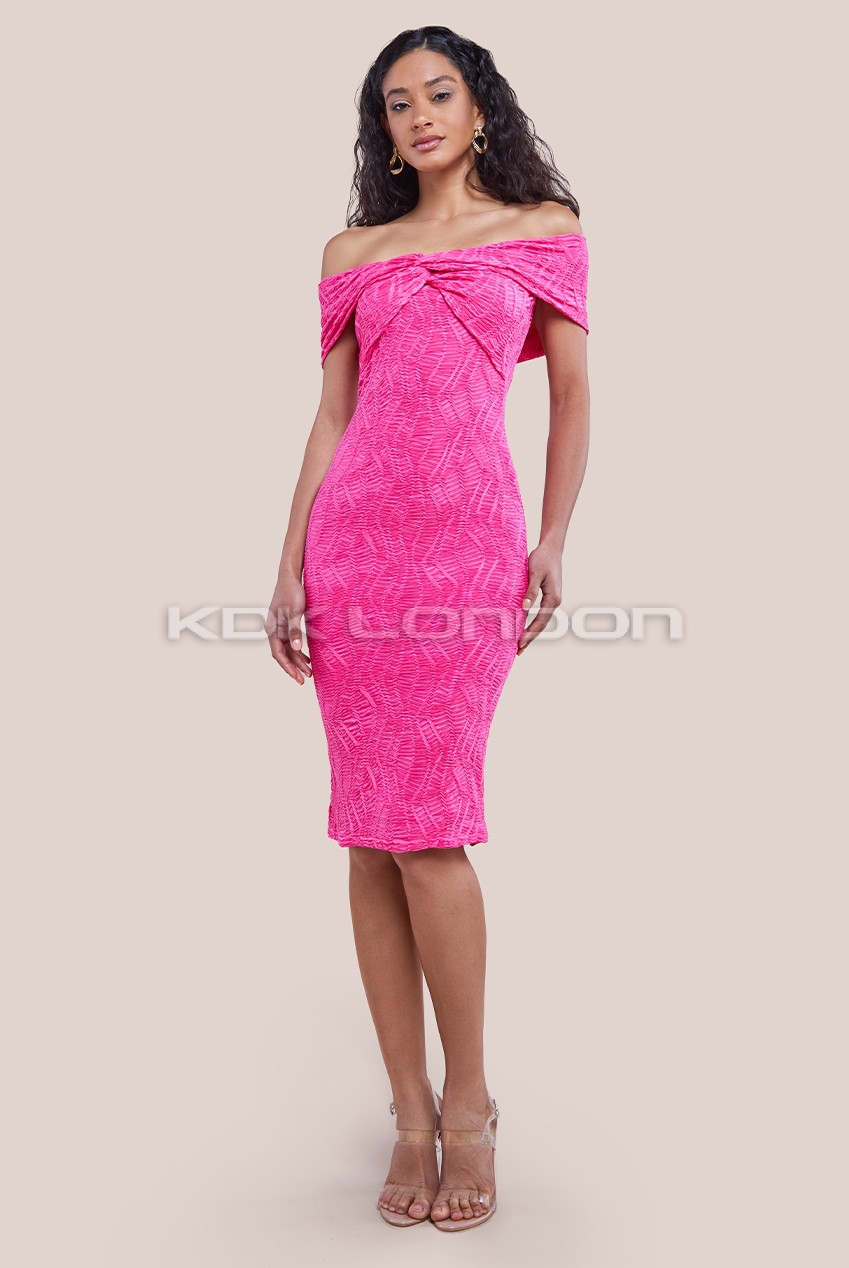 Magenta Front Knot Twist Midi Dress