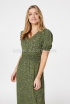 STELLA Khaki Short Sleeve Printed Midi Dress