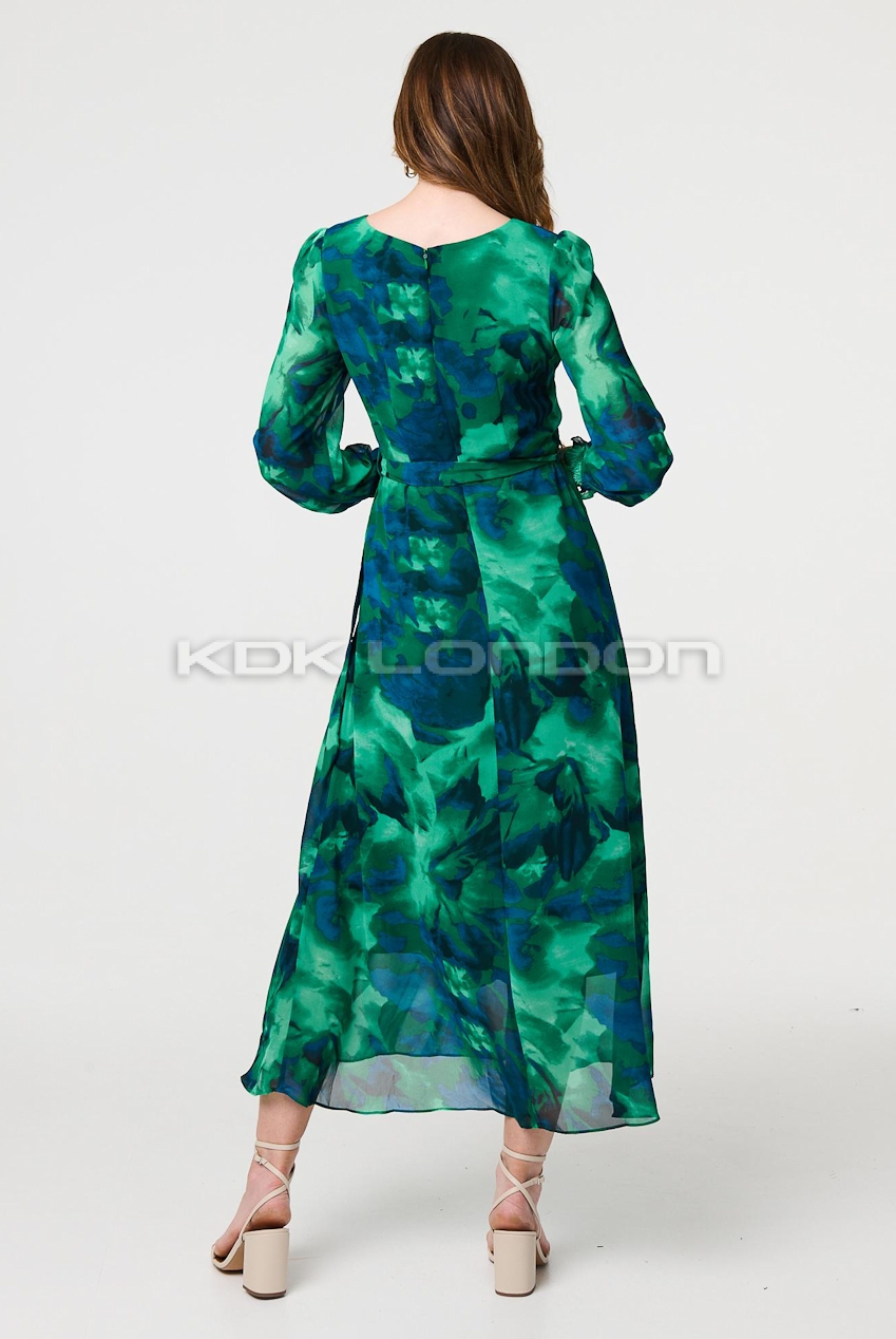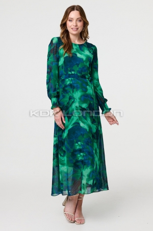 STELLA Green Long Sleeves Round Neck Midi Dress