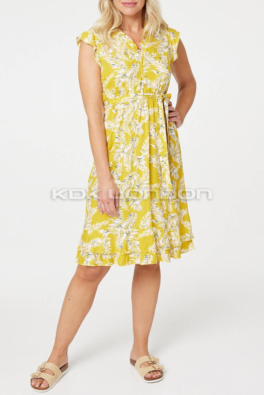 STELLA Yellow Printed Cap Sleeve Midi Dress